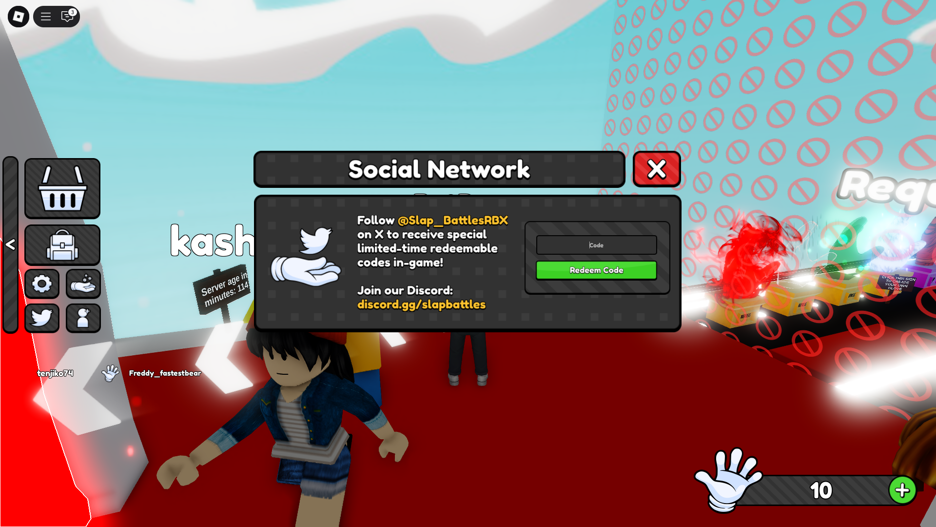 注:フォローする必要がありますx on @slap_battlesrbx on xこれらのコードを引き換えようとする前に。